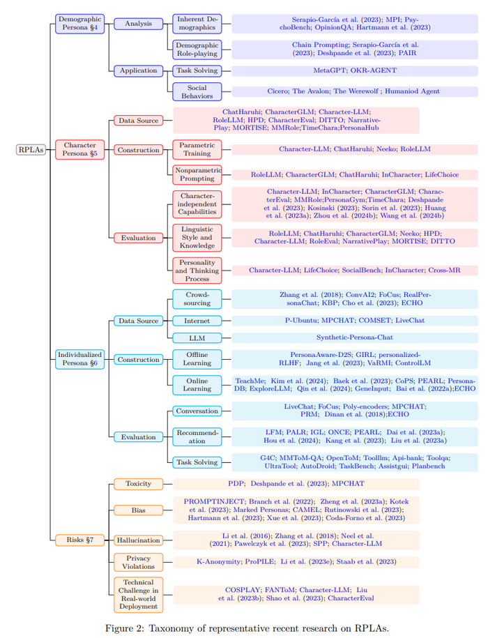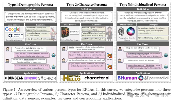 来自复旦大学等机构的研究人员发表了一篇综述,提出了RPLAs的三层人格分类框架,按照个性化程度的递进,将RPLAs的人格类型分为群体人格、角色人格和个性化人格。