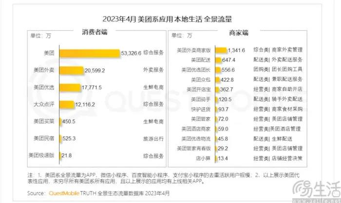 但即便有种种优势,大众点评的"AI化"也并非没有挑战。在Questmobile的相关报告中显示,2023年4月大众点评全渠道去重活跃用户规模为1.2亿、较2016年第二季度跌去了超过50%。国金证券公布的数据则表面,2023年大众点评日活用户数仅为约1890万,而且这还是在同比增长81%的情况下。