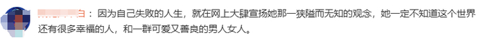 “ 因为自己失败的人生,就在网上大肆宣扬她那一狭隘而无知的观念。 ”