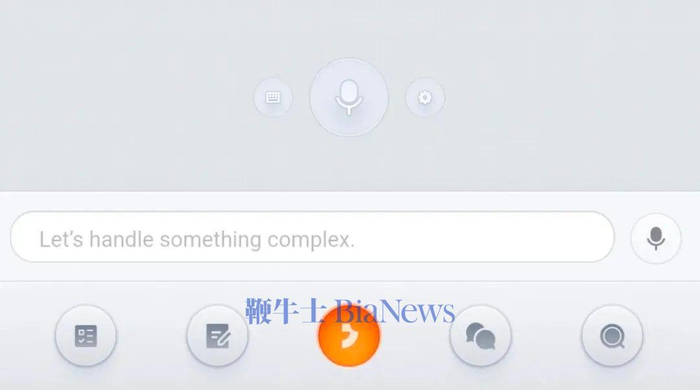 产品主界面还是比较简单,页面底部只有对话、便签、子弹短信、任务事项等几个功能。除了麦克风外只有任务事项、便签、语音交互对话、短信、Ripple Touch等。