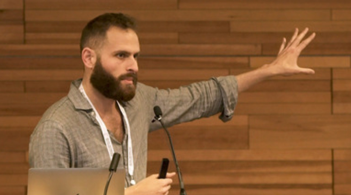 沙龙主题是《AI 对齐到底有多难?》,四位专家分别是负责社会影响研究的 Alex Tamkin(左一);