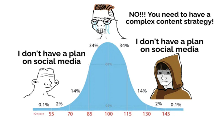 这让我想起 AI 领域一个有趣的现象,有点类似那个“钟形曲线”的表情包。