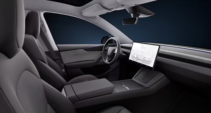 内饰的升级是比较实在的,配置看齐 Model 3 焕新版,增加了前排座椅通风和后排屏幕,后排座椅加长 15mm,头枕加宽 17mm,后排座椅也增加了电动调节,全景天窗还带有镀银涂层,能够提升防晒和隔热性能。