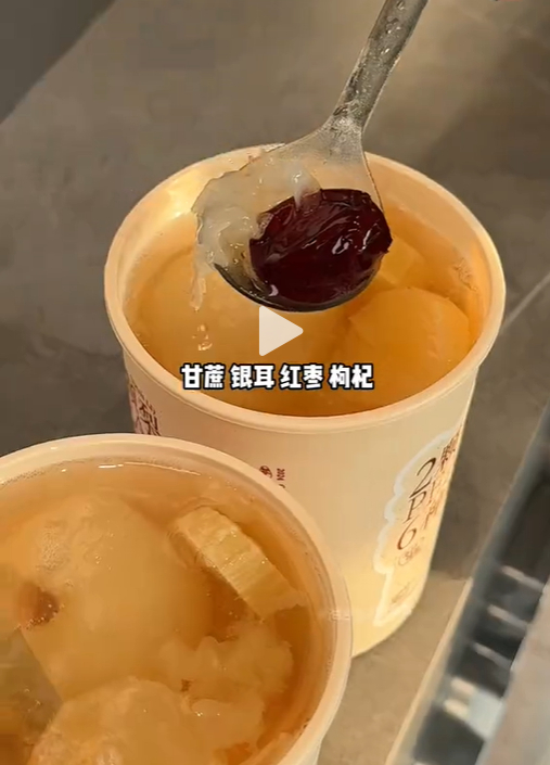根据官方介绍,古茗选用的是新鲜的库尔勒香梨,削皮后现炖,除此还搭配了甘蔗、银耳、红枣和枸杞。