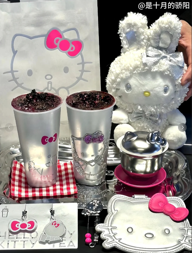 就拿近期的来说,比较出圈的榜单里,就有一款喜茶和 Hello Kitty 的联名,长这样~