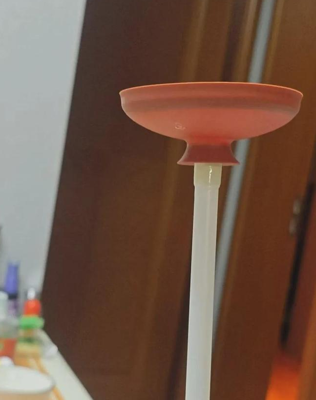 当大家将白色的吸管插在了这个红棕色的杯口上时,跟印象里的老式马桶搋子太相似了?