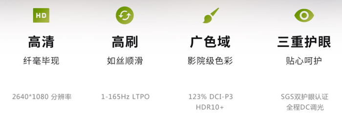 则是一块 6.9 英寸 165Hz 1080P LTPO 屏幕,同样支持 DC 护眼调光,最高亮度可达 1400nits 。