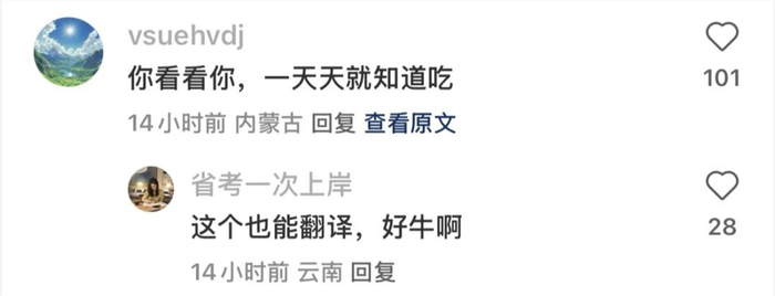 而且与其说是翻译,不如说是破译🥲,现在什么类型的“加密语言”在小红书评论区都无处遁形,翻译得那叫一个“信达雅”,堪比网上冲浪十级选手。