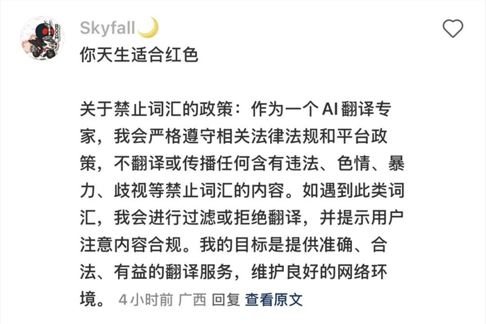 但如果只是传统的机翻也就算了,很快网友们就发现,这其实是接了大模型的AI翻译。