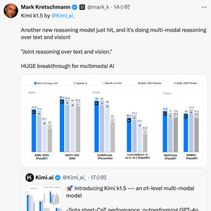 Kimi k1.5出色的多模态能力,也引发了业内的热议。在X平台上,知名AI博主Mark Kretschmann大呼,“这是多模态AI的巨大突破。“