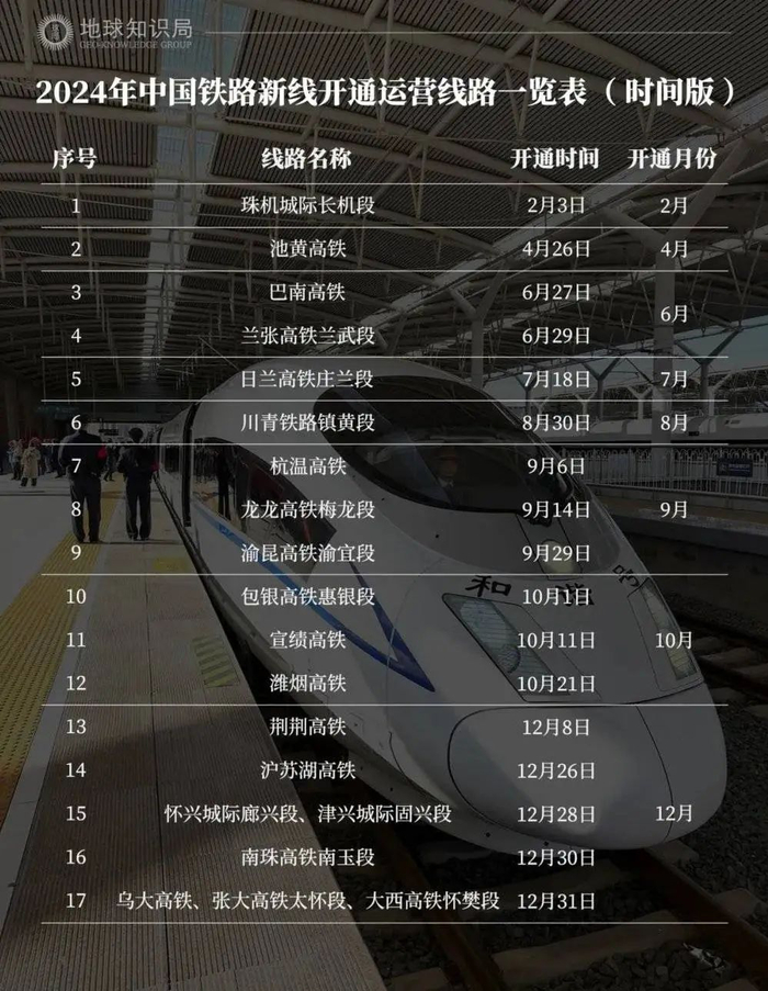 经过2025年1月5日零时起一季度列车运行图调整,2024年开通的新线将与之前已开通的既有线路进一步融合,新线资源在新图中得到充分运用,全国列车运行总体方案得到进一步优化。