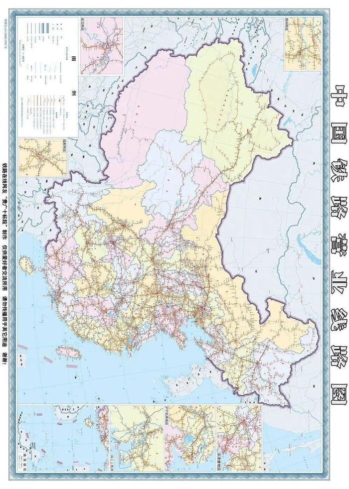 这是一张《中国铁路营业线路图》,绘制者为@贵广十标段,图中尽可能展示了当下中国铁路的运营情况。
