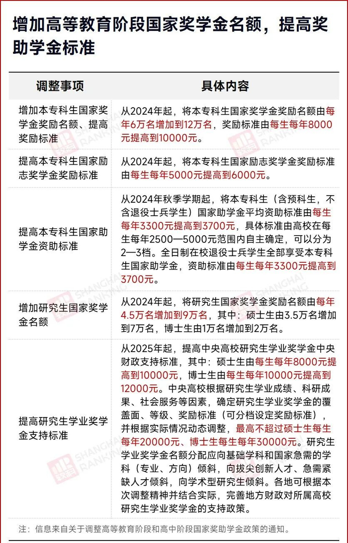 其中涉及高校学生奖助学金调整的,具体内容如下:
