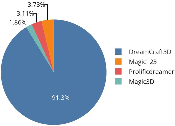 在之后的主观评比中,相较于之前的生成方法,超过 90% 的用户表示 DreamCraft3D 的生成质量更具优势。