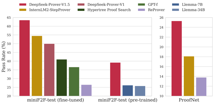 2024年8月16日,DeepSeek 开源发布了其数学定理证明模型 DeepSeek-Prover-V1.5,这款模型在高中和大学数学定理证明测试中,均超越了多款知名的开源模型。