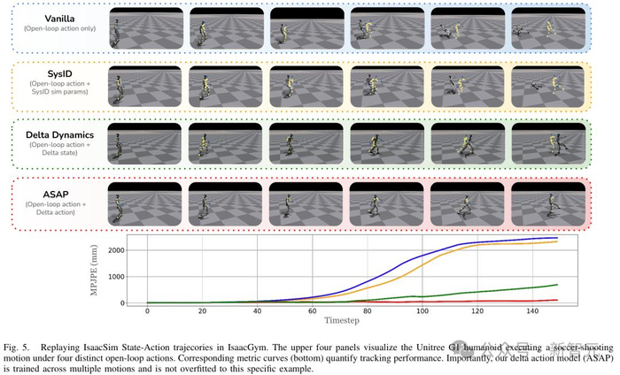 仿真和现实环境中的大量实验表明,ASAP能够有效减少动力学不匹配问题,让机器人做出高度敏捷的动作,同时显著降低运动跟踪误差。