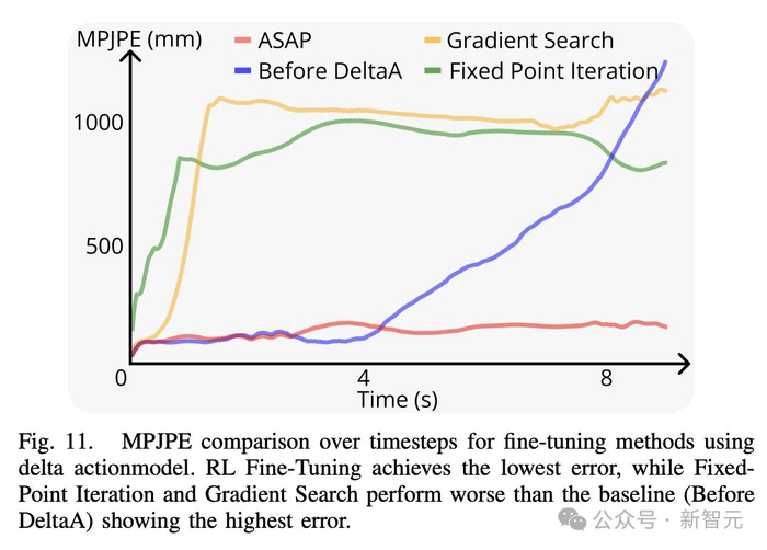 为了进一步说明ASAP的优势,研究人员在图7中提供了逐步可视化比较,对比了ASAP与未经微调直接部署的强化学习策略。