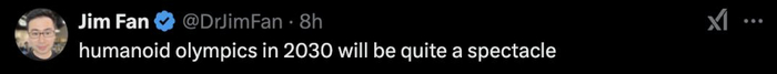 Jim Fan对此畅想道,2030年的人形机器人奥运会一定会是一场盛宴!