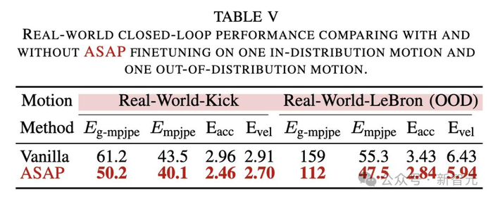 这些发现突显了ASAP在改进敏捷人形机器人运动跟踪的仿真到现实迁移方面的有效性。