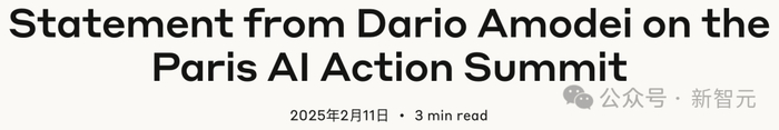 在本周二,他在Anthropic的官网上,发布了个人关于巴黎AI峰会的声明,称本此峰会「错失了一次机会」,并敦促AI行业和政府「更加迅速且明确地行动」。