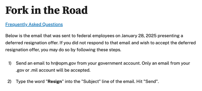 这封主题为“岔路口”的邮件,向包括中情局员工在内的逾200万联邦雇员发出了买断工龄的提议,即如果决定“自愿辞职”,可在9月30日前继续领取工资而无需工作。
