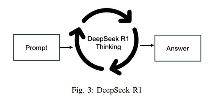 DeepSeek R1顺序生成令牌,并通过生成思考令牌来阐明其推理过程,从而为问题解决分配额外时间,如图3所示。