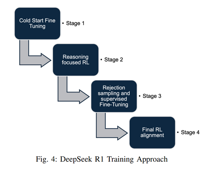 冷启动微调:使用精选数据集和思维链(CoT)增强清晰度并加速RL。
