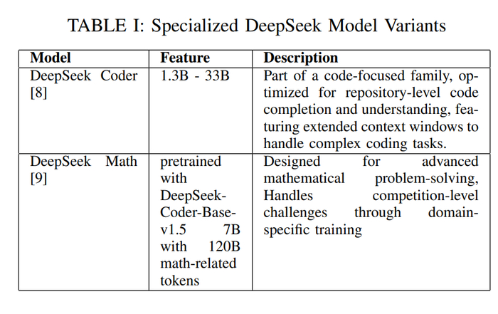 表I展示了其他基于DeepSeek的专用变体。