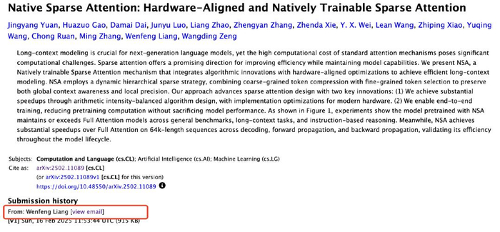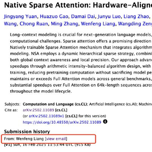 2 月 18 日,DeepSeek 发布了一篇新论文,提出了一种新的注意力机制——NSA。值得注意的是,创始人梁文锋参与编写并亲自上传了该论文。