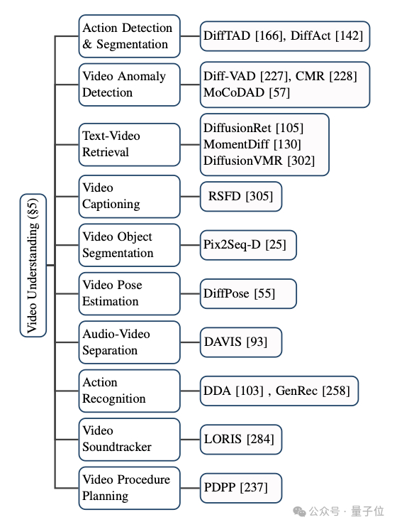 通过对前沿论文的追踪,作者归纳了视频时序分割、视频异常检测、视频物体分割、文本视频检索、动作识别等多个现有的应用场景。