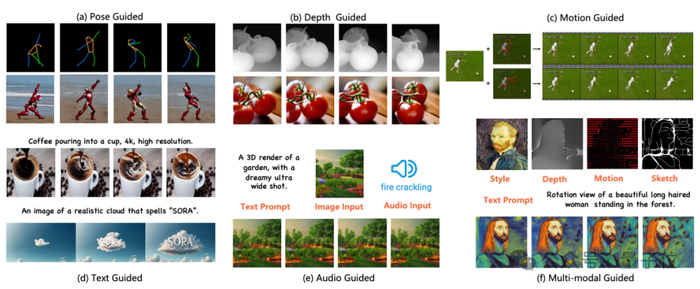 这些工作不仅提供了比纯文本更为精准的控制条件,还将不同模态的信息融合到视频生成的过程中,极大地丰富了视频生成的技术手段和应用场景。