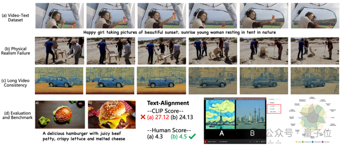 因此,未来的研究需要致力于研发更加客观、全面的自动化评价指标,既能衡量生成视频的视觉质量,也能捕捉到其物理真实性和时空一致性。