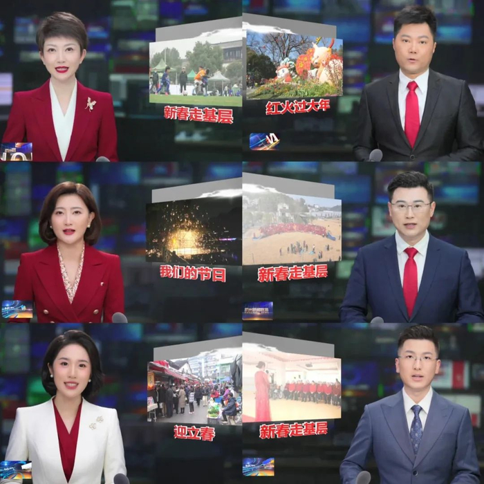 据“杭州综合频道”官方公众号消息,蛇年春节,杭州电视台综合频道《杭州新闻联播》首次采用数字人双播模式,由去年两个数字主播形象单播模式,升级为六个数字主播形象的双播模式。