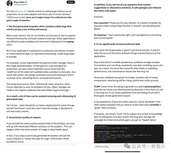 Roose却对调试和维护方面的挑战避而不谈,这无疑扭曲了AI编程系统的实际应用难度。