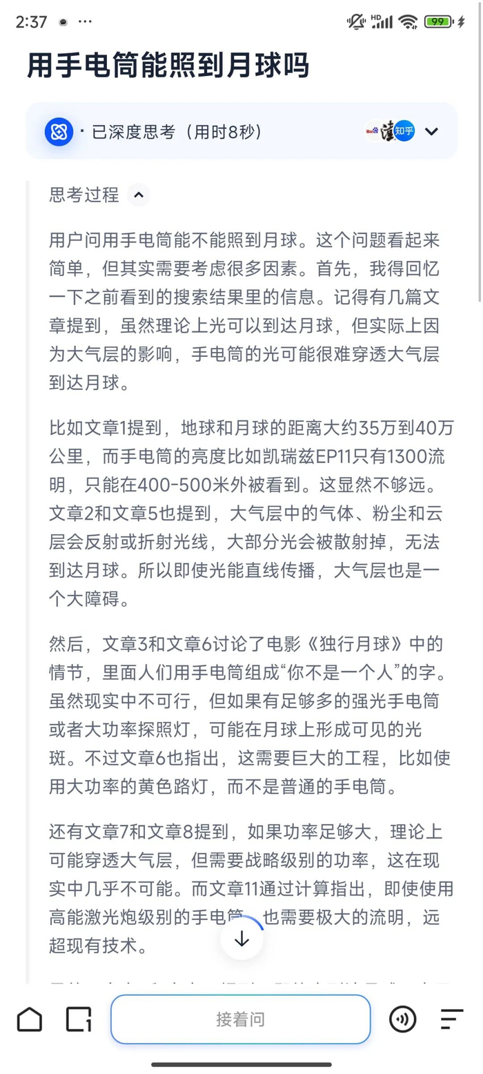 无论是理科问题“用手电筒能照到月亮吗?”
