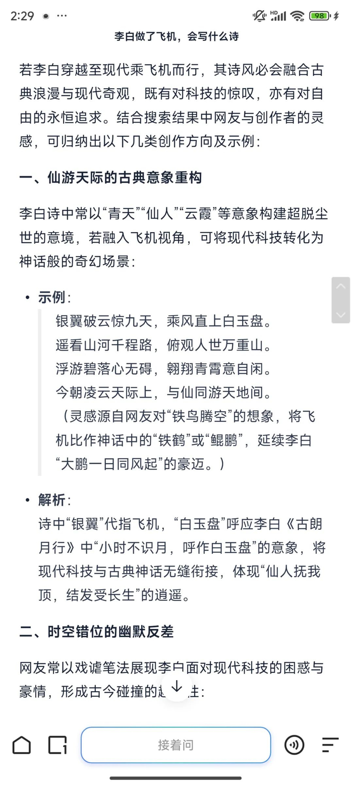 还是文科问题“李白坐了飞机,会写什么诗”