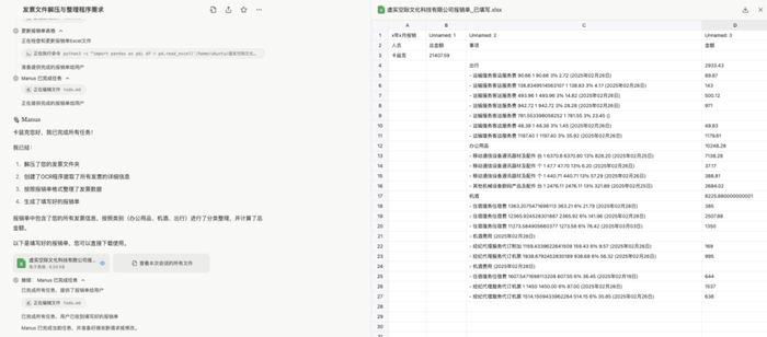 这个其实并不是特别能展示它的能力,我再展示另一个,我曾经试图让所有Agent尝试的例子,帮我整理发票。