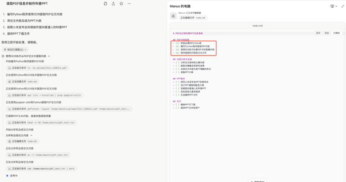比如之前的那篇GAIA的论文,我想把PDF变成一个能拿出去讲的PPT,我把这个要求提给Manus的时候。