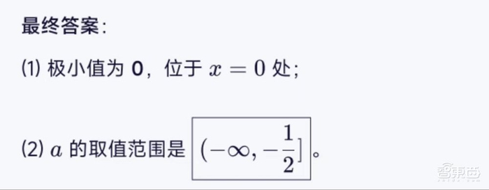 最终,QwQ-32B两个小题的答案都完全正确,解题格式较为规范,不过,它漏掉了一个踩分点,无法拿到满分。