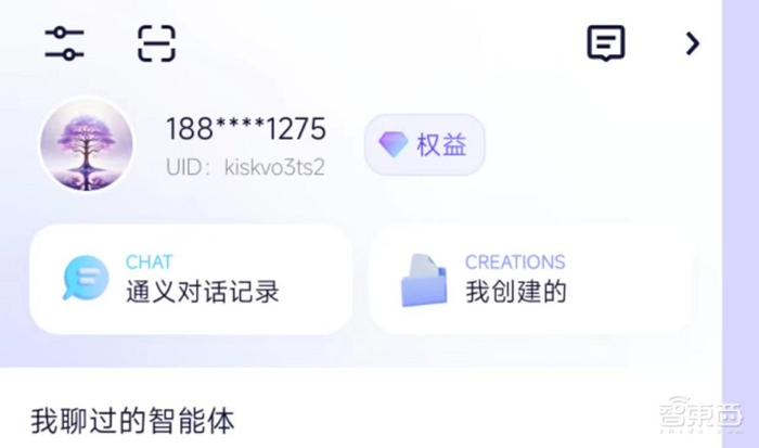 而在新版通义中,左滑后进入的对话记录、个人资产页面划分更加易懂,被分为对话记录、我创建的、我聊过的智能体,用户能通过这些名称更直观地找到自己所需的信息。