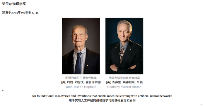 他们的工作,以及另一位诺奖物理学奖得主约翰·霍普菲尔德(John Hopfield)等神经网络先驱的早期研究,共同奠定了现代人工智能发展的基础。