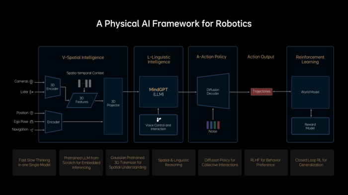 贾鹏表示:“MindVLA是机器人大模型,它成功整合了空间智能、语言智能和行为智能,一旦跑通物理世界和数字世界结合的范式后,将有望赋能更多行业。MindVLA将把汽车从单纯的运输工具转变为贴心的专职司机,它能听得懂、看得见、找得到。我们希望MindVLA能为汽车赋予类似人类的认知和适应能力,将其转变为能够思考的智能体。”