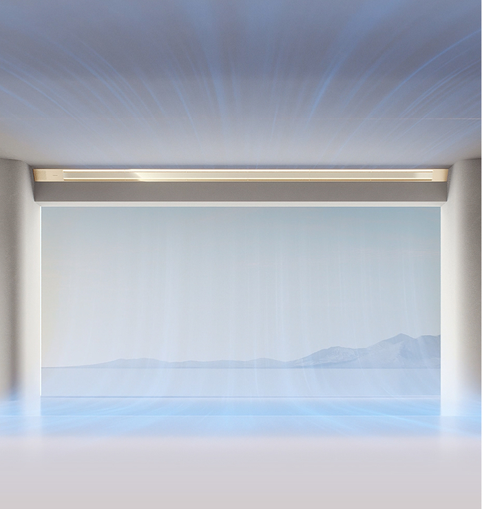 经过全域分布式自然⻛系统处理,让你感觉不到风直接吹到你身上,像一层“空气被子”一样,轻轻地覆盖整个空间,就像被自然、轻柔的空气包围着,让每个角落都能感受到均匀的温度。