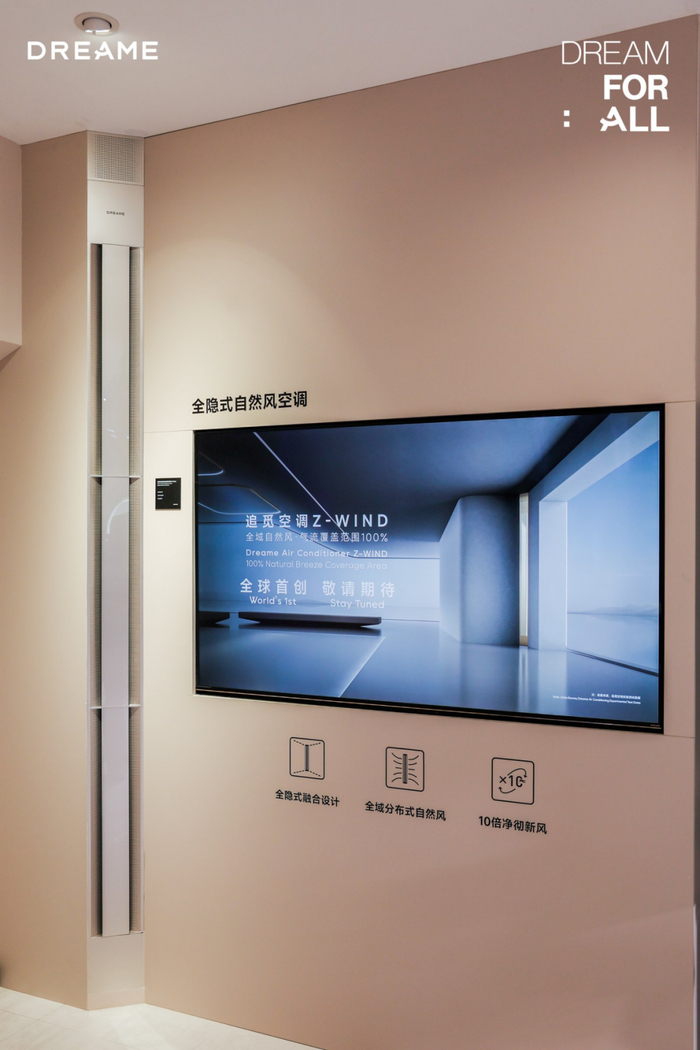 除了全球首创的双机械臂空调X-Wind外,拥有浓厚技术标签的追觅,更是推出了“全球首创全嵌式整体机空调”Z-Wind,凭借行业内首个真正实现家居融合、全域分布式自然风的技术方案,吸引了诸多现场观众的眼球。