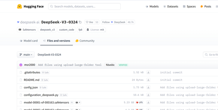 但暂时还不是 DeepSeek V4 或 R2,而是 DeepSeek V3 模型的一次更新。目前,其开源版本目前已经上架开源网站。其开源版本模型体积为 6850 亿参数。