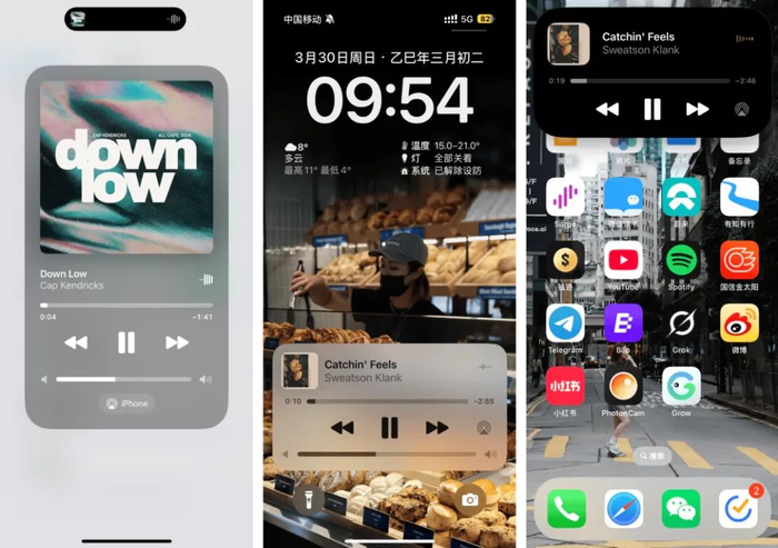 点击任意一个控制中心的环境音乐类别,就会随机播放相应类别的纯音乐,从我个人收听的感受来说,这些编辑精选的音乐还是很有品味的,基本上每一首我都会听完。当然,如果你想要播放下一首乐曲,可以通过灵动岛、正在播放小组件或者 Apple Watch 来跳过切歌。
