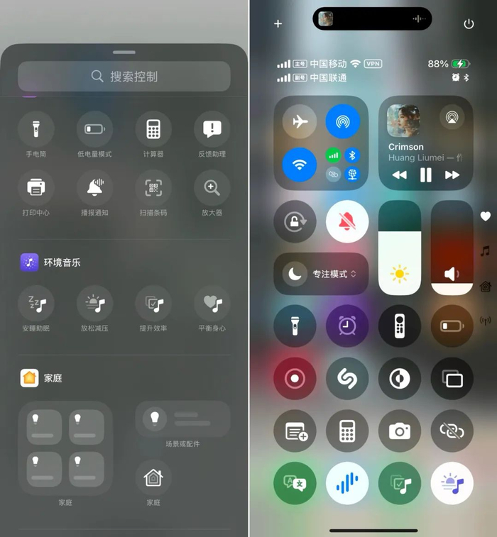 Apple 在 iOS 18.4 版本中新增了一个「环境音乐」的功能,着实有点让我感到惊喜。目前,环境音乐只能通过控制中心来添加使用,即用即走,有一种「小程序」的感觉。从屏幕右上角下滑打开控制中心,依次点击左上角的 + 按钮和底部的添加控制按钮,我们就可以在此处添加安睡助眠、放松减压、提升效率和平衡身心四个类别的环境音乐了。