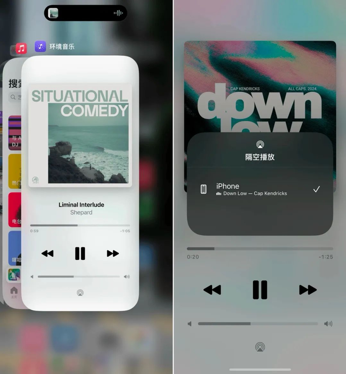 如果你想要完全退出环境音乐播放,目前只有两种方式:一种是在控制中心再次点击相应类别的环境音乐按钮,另一种则是从底部上划屏幕进入应用后台界面,然后将环境音乐的应用卡片上划关闭。值得一提的是,环境音乐也支持 AirPlay,因此你也可以将它通过 AirPlay 在自己更好的音频设备播放,进行更加沉浸式的放松。