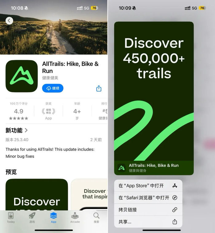iOS 新版本中的 App Store 变得更加方便了,首先是应用下载终于支持了暂停和恢复,而不像以往只能完全停止、从头再来;其次是浏览器中的 App Store 应用链接可以直接预览相关内容,不再需要跳转到 App Store 中;最后是部分国家与地区的 App Store 应用界面提供了评论摘要,可以让我们快速掌握这款应用的用户评价情况,不再需要去一个一个翻评论了。