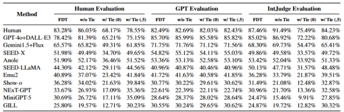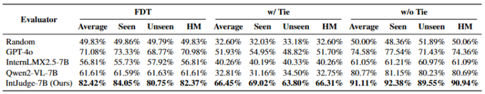 传统基于 GPT 的评测模型(比如 GPT-as-a-Judge)容易受到模型本身偏见,倾向于给自家生成的内容更高的评分。另外此类评测模型因为受到潜在的数据泄露的影响,使得评测的准确性和稳定性存疑。为了获得更加公平、精准、稳定的评测结果,OpenING 团队自主研发了一款名为 IntJudge 的评估模型。